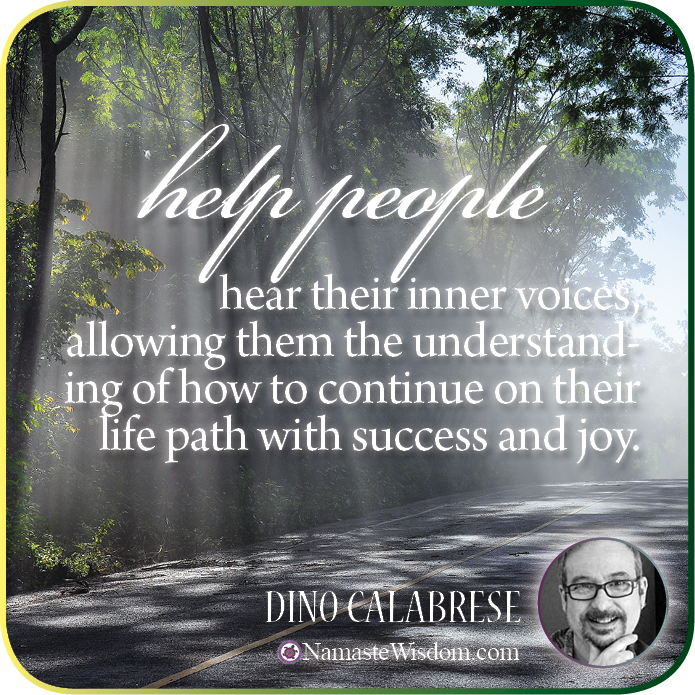 Dino Calabrese is a designer and an artist.he has discovered that he has the ability to hear voices surrounding others as well as himself. For the past thirty years, Dino has been helping people hear their inner voices, allowing them the understanding of how to continue on their life path with success and joy.
